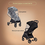 - В комплекте с коляской идет дождевик и москитная сетка, чтобы ваш малыш всегда оставался под защитой — будь то солнечный день или дождливый вечер.