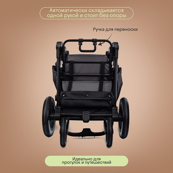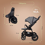- С весом всего 10,5 кг и компактными размерами в сложенном виде (40 x 56 x 70 см), эта коляска легко помещается в багажник вашего автомобиля или в ограниченное пространство. Диаметр передних (20 см) и задних (28 см) колес обеспечивает отличную проходимость по любым поверхностям — от городских тротуаров до парковых дорожек.