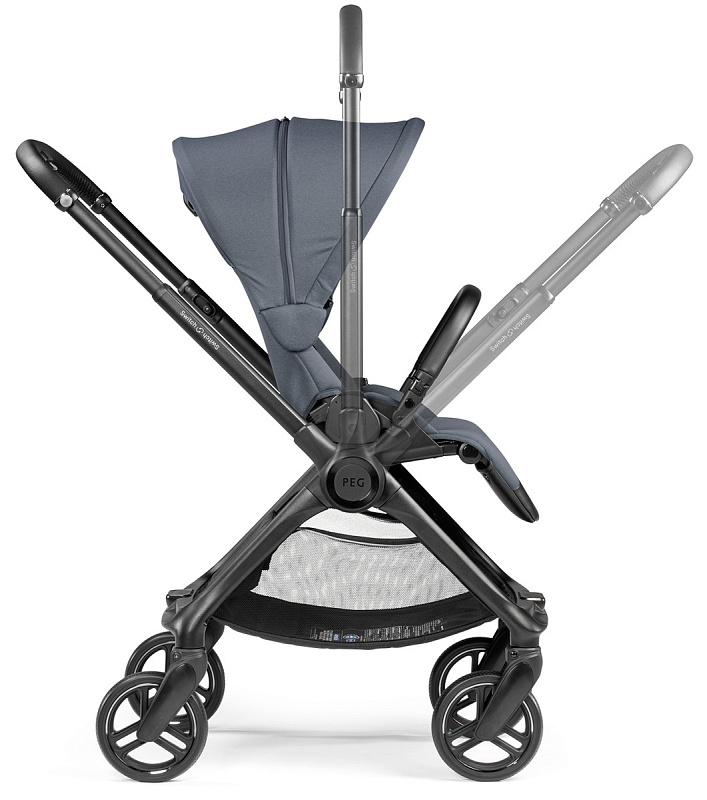 Switch — прогулочная коляска с реверсивной ручкой. Switch создана для максимальной свободы в городе. Благодаря реверсивной ручке одним движением можно менять направление движения — лицом к родителю или к миру, не тревожа ребёнка. Коляска способна двигаться боком, что позволяет легко маневрировать даже в узких пространствах.