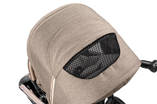 Коляска оснащена реверсивным сиденьем, что позволяет ребенку сидеть лицом к родителям или лицом к окружающему миру. Ширина шасси составляет всего 57 см, что делает коляску маневренной и легко управляемой.