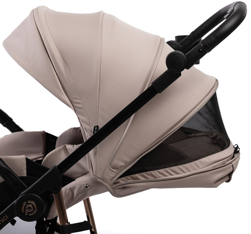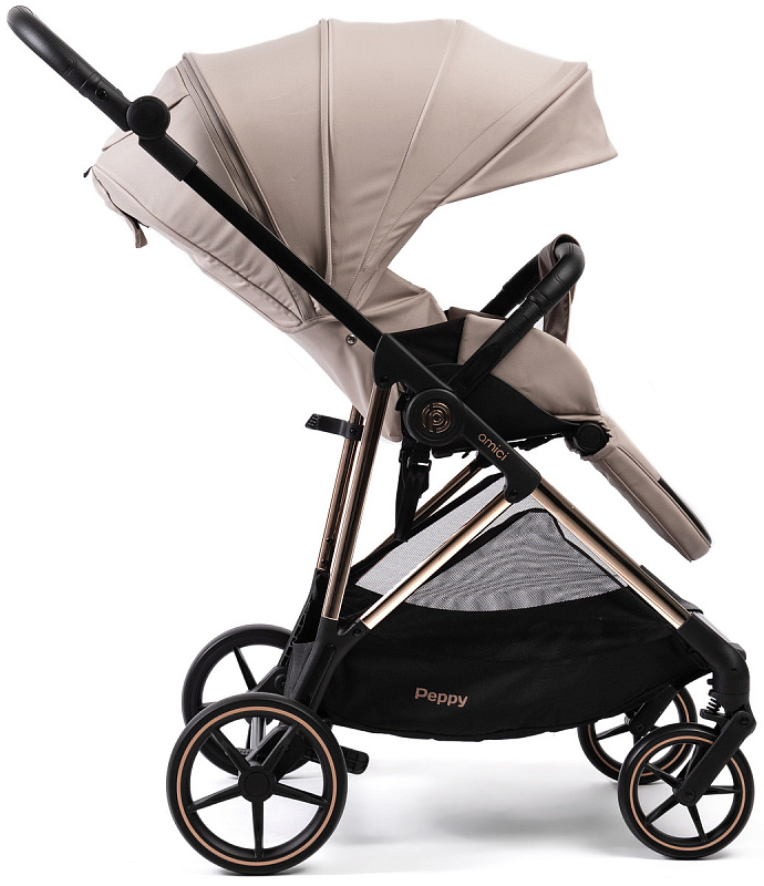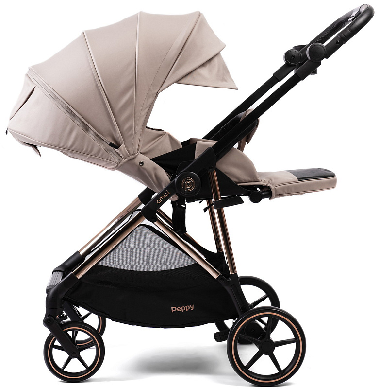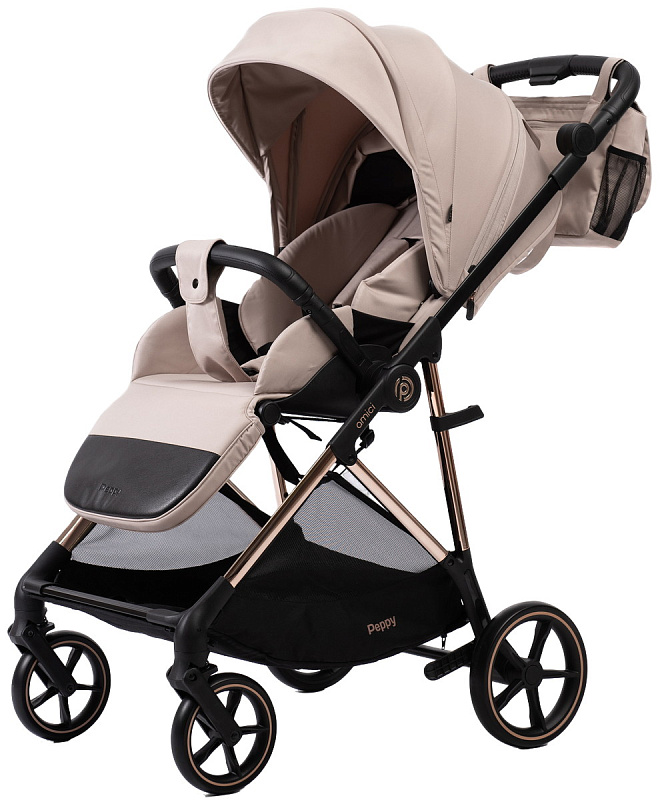 Прогулочная коляска Peppy Amici с автокреслом First Black Beige рама Gold
