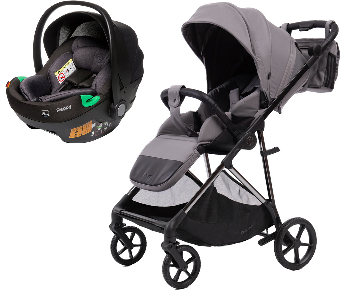 Прогулочная коляска Peppy Amici с автокреслом First Black Grey рама Black Chrome