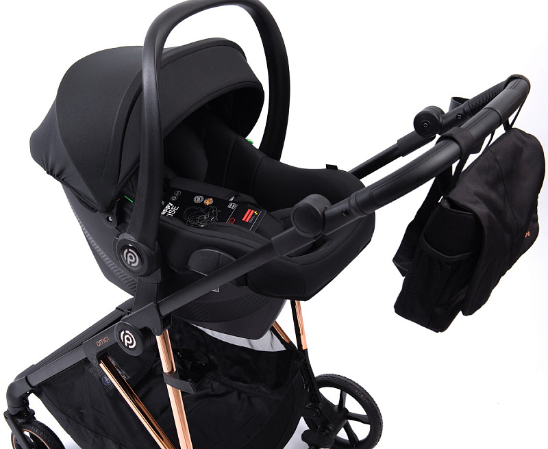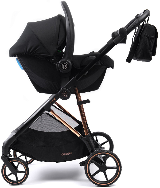 Прогулочная коляска Peppy Amici с автокреслом Rise Black Beige рама Gold