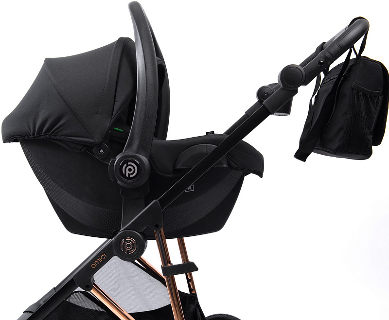 Прогулочная коляска Peppy Amici с автокреслом Rise Black Green рама Gold