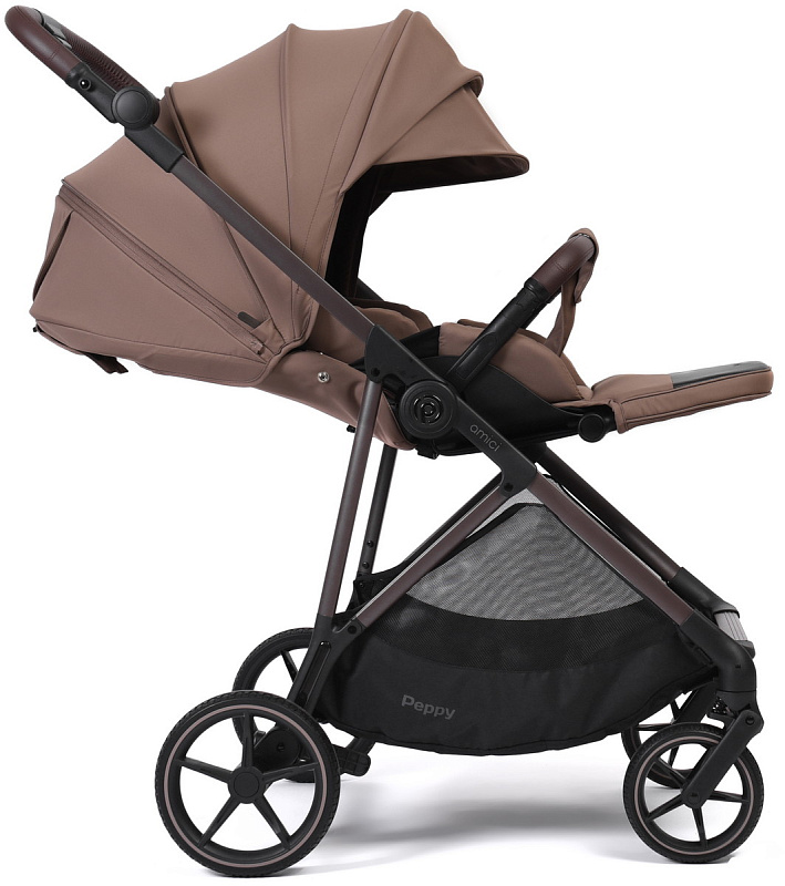 Прогулочная коляска Peppy Amici с автокреслом Rise Black Mocca рама Mocca