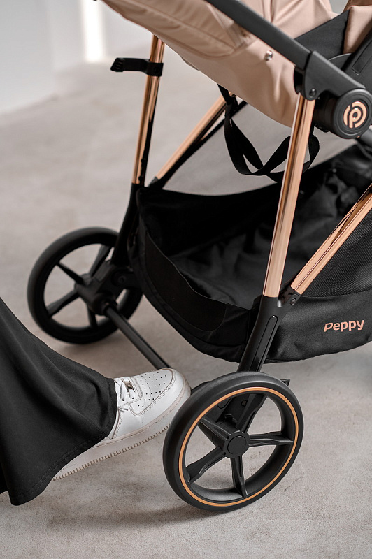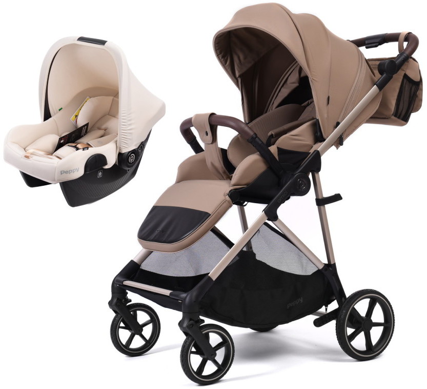 Прогулочная коляска Peppy Amici с автокреслом Rise Milk Latte рама Beige