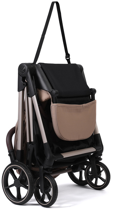Коляска оборудована удобным механизмом складывания, мягкой амортизацией и глубоким капюшоном. Подходит для использования в любое время года.