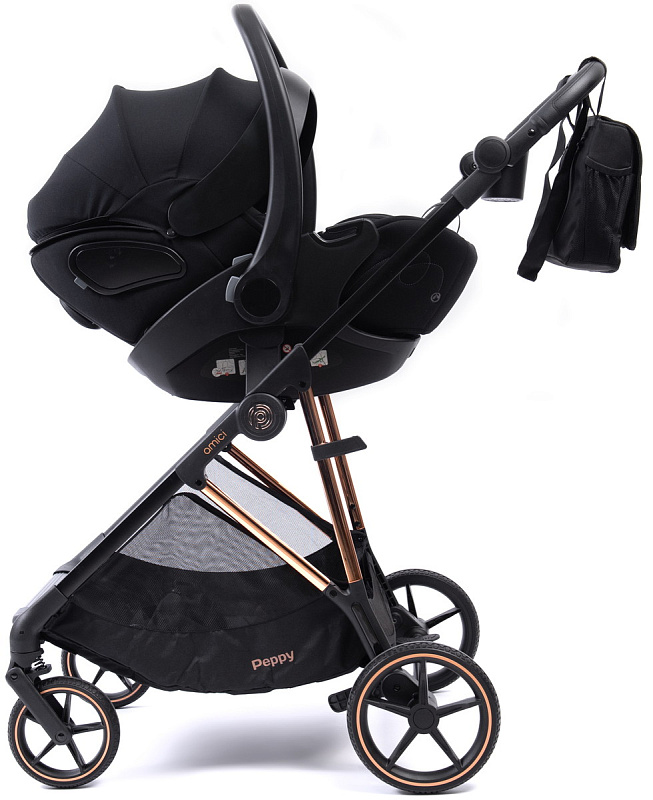 Прогулочная коляска Peppy Amici с автокреслом Verona Black Green рама Gold