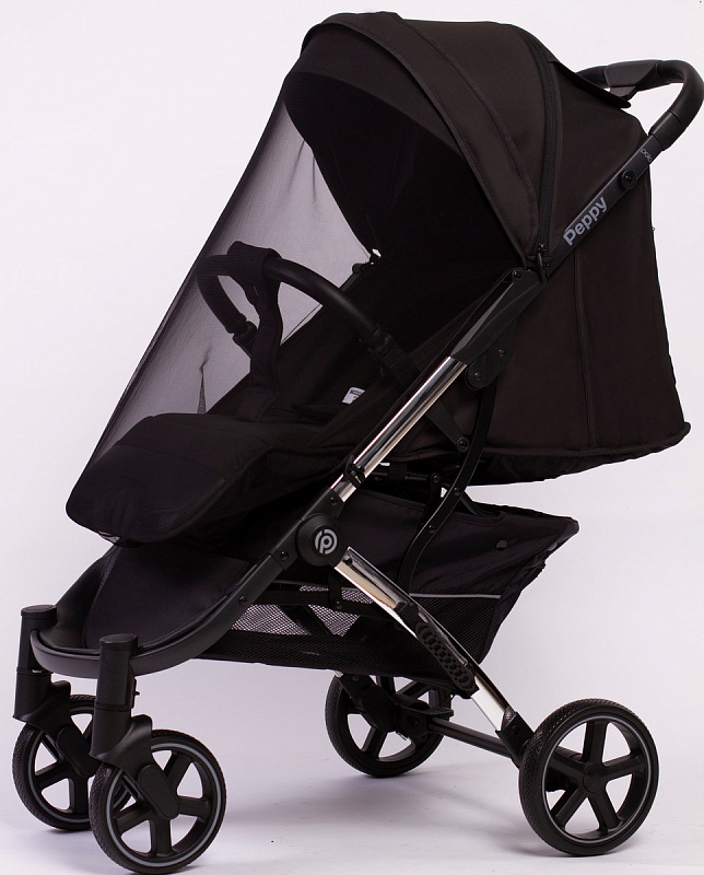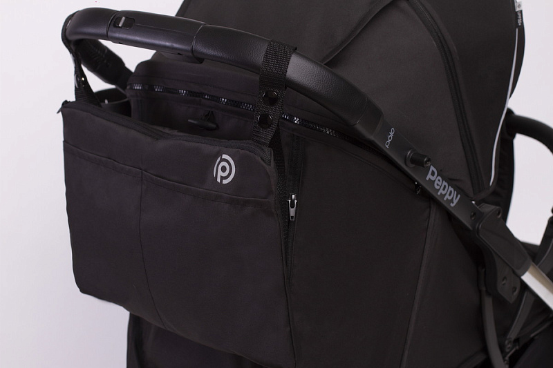 Прогулочная коляска Peppy Polo 2.0 Silver black хром рама, сумка