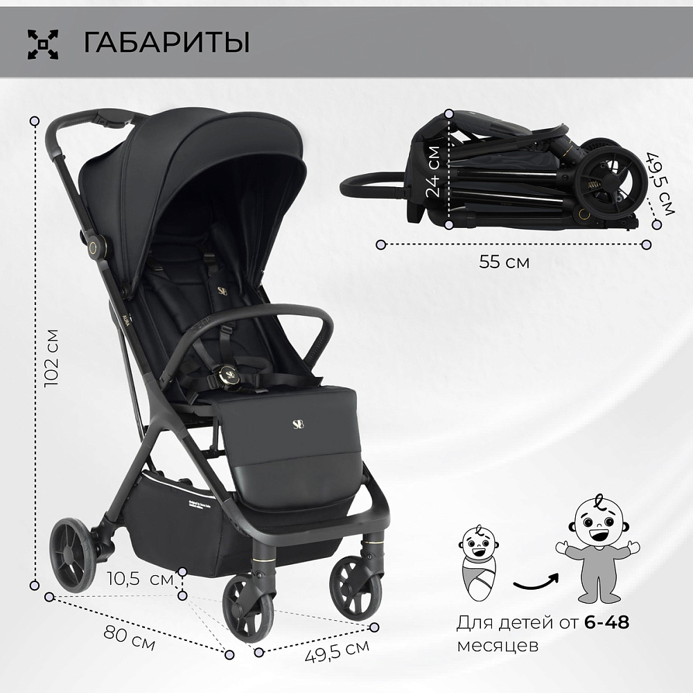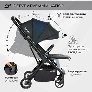 Лёгкая прогулочная коляска Aura- стильная, маневренная, легкая коляска, которая станет незаменимой помощницей в путешествиях и дальних поездках.