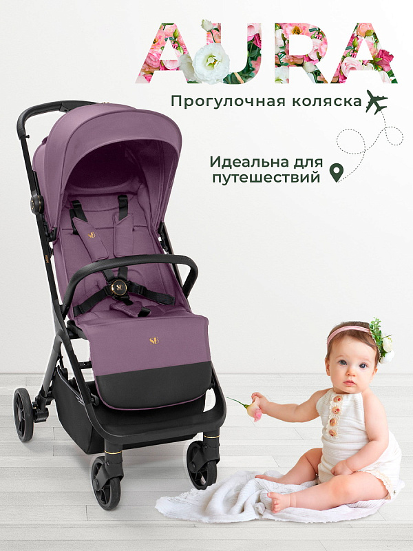 Лёгкая прогулочная коляска Aura- стильная, маневренная, легкая коляска, которая станет незаменимой помощницей в путешествиях и дальних поездках.