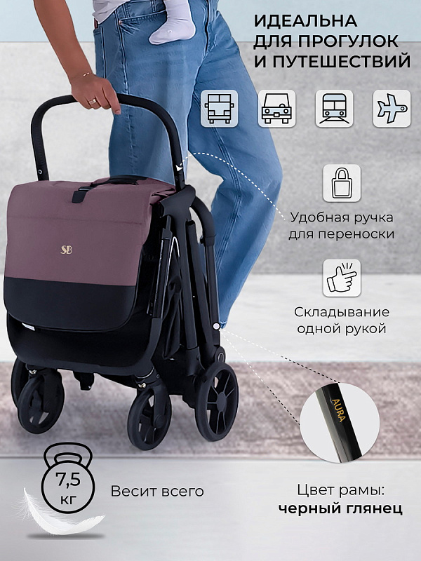 Лёгкая прогулочная коляска Aura- стильная, маневренная, легкая коляска, которая станет незаменимой помощницей в путешествиях и дальних поездках.