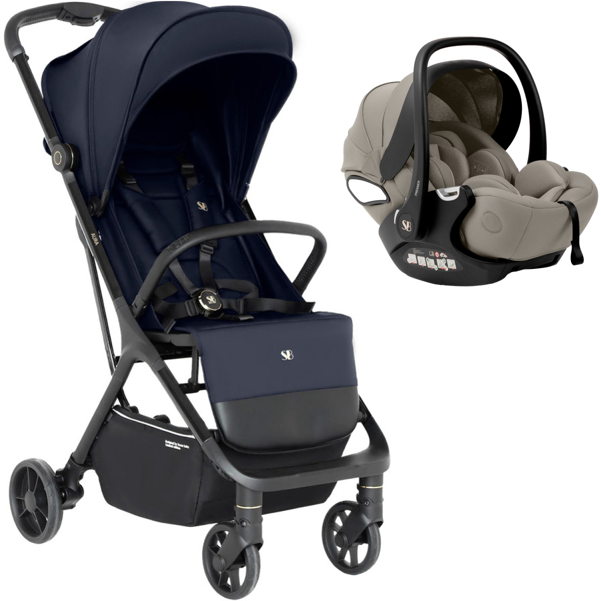 Прогулочная коляска Sweet Baby Aura + автокресло Premier Begie Dark Blue