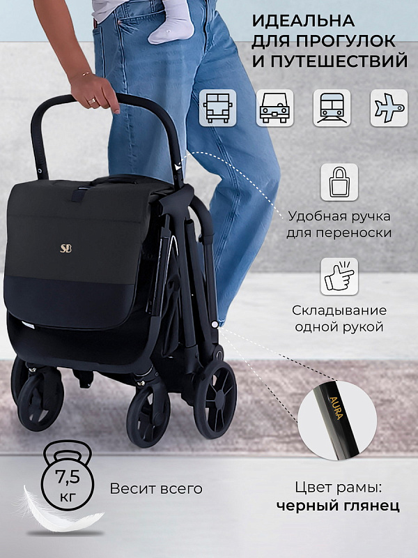 Лёгкая прогулочная коляска Aura- стильная, маневренная, легкая коляска, которая станет незаменимой помощницей в путешествиях и дальних поездках.