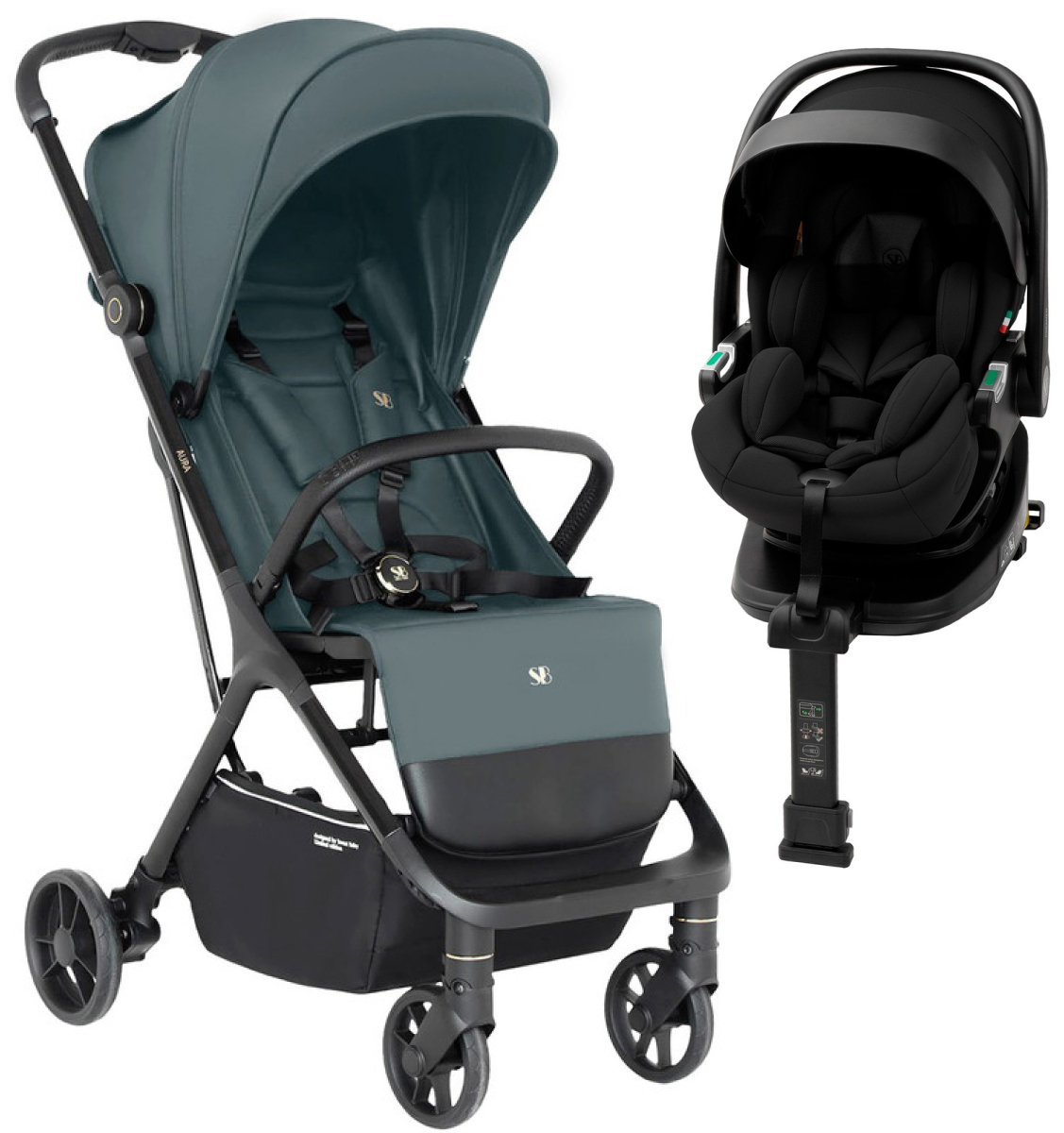 Прогулочная коляска Sweet Baby Aura + автокресло Premier Plus Black Green