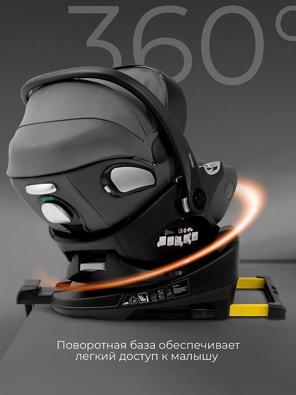 - База i-Size, которая идет в комплекте, превращает автолюльку в полноценное поворотное автокресло на 360 градусов, тем самым упрощая процесс посадки и пристегивания ребенка.