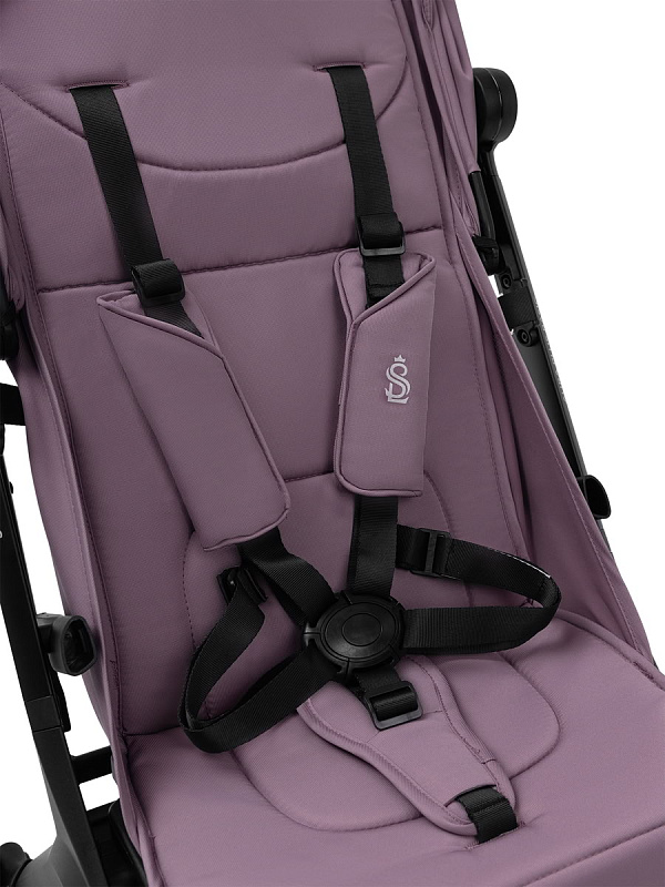 Коляска SBL Aura Basic привлекает внимание своим дизайном: затемненная хромированная фурнитура, черная матовая алюминиевая рама и амортизационные пружины придают ей строгий и стильный вид. Пятиточечные ремни безопасности обеспечивают надежность и спокойствие во время прогулок.