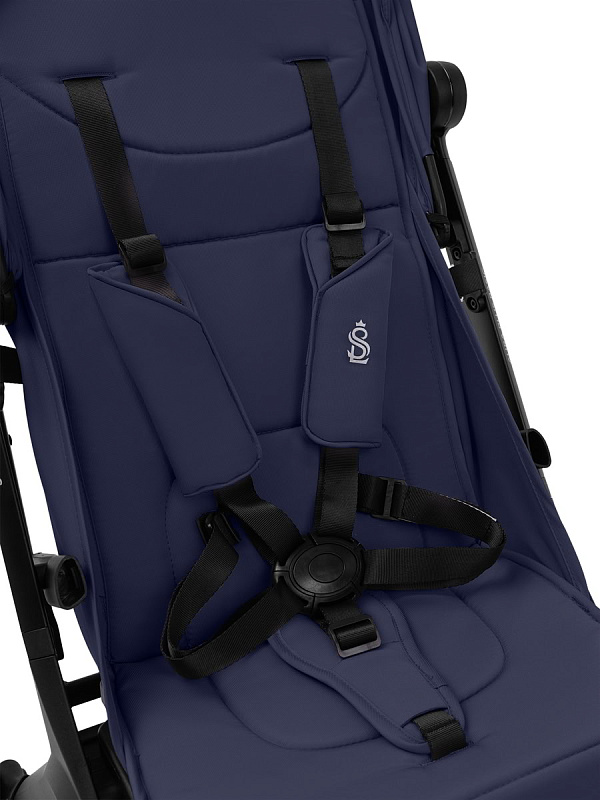 Коляска SBL Aura Basic привлекает внимание своим дизайном: затемненная хромированная фурнитура, черная матовая алюминиевая рама и амортизационные пружины придают ей строгий и стильный вид. Пятиточечные ремни безопасности обеспечивают надежность и спокойствие во время прогулок.
