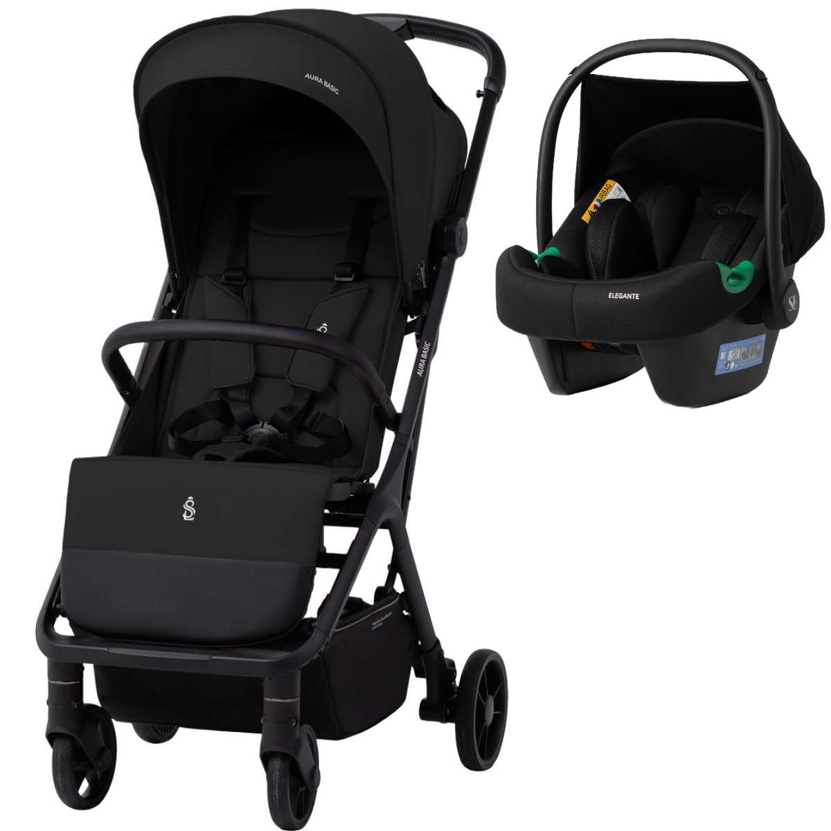 Прогулочная коляска Sweet Baby Aura Basic SBL + автокресло Elegante Plus Black
