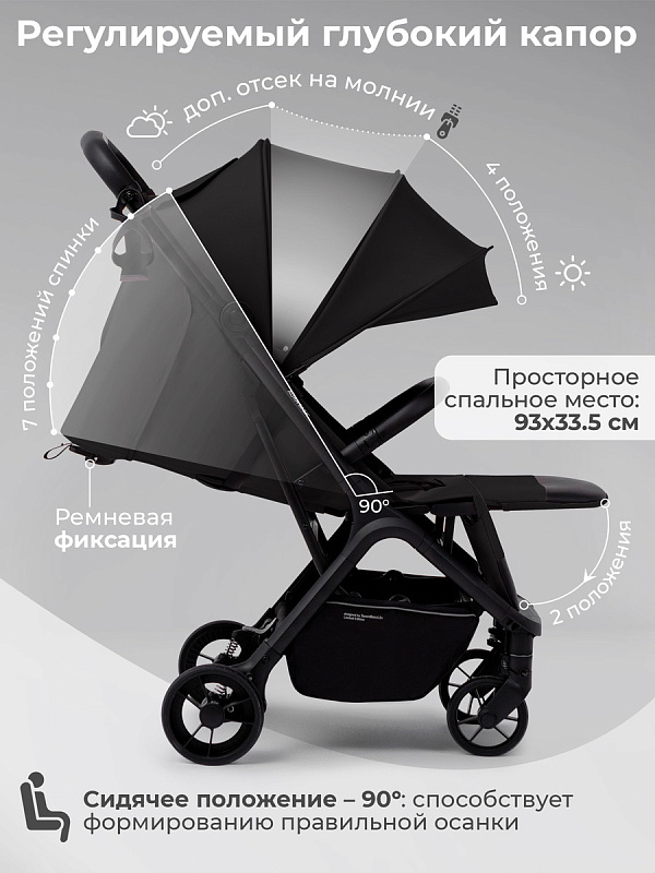 Просторное спальное место (93х33,5 см) и большой глубокий капюшон с дополнительным отсеком подарят сладкие сны вашему малышу.