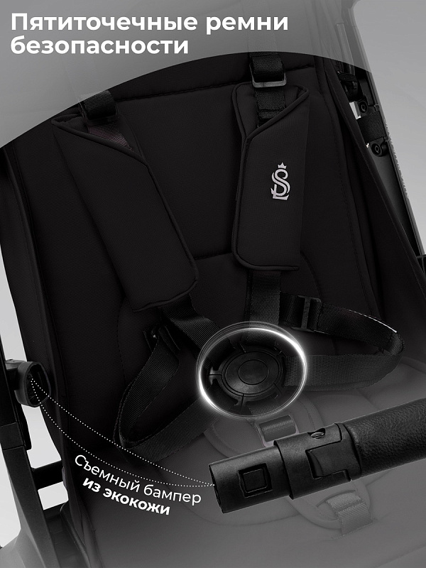 Коляска SBL Aura Basic привлекает внимание своим дизайном: затемненная хромированная фурнитура, черная матовая алюминиевая рама и амортизационные пружины придают ей строгий и стильный вид. Пятиточечные ремни безопасности обеспечивают надежность и спокойствие во время прогулок.