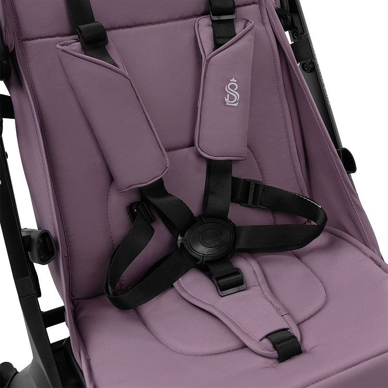 Коляска SBL Aura Basic привлекает внимание своим дизайном: затемненная хромированная фурнитура, черная матовая алюминиевая рама и амортизационные пружины придают ей строгий и стильный вид. Пятиточечные ремни безопасности обеспечивают надежность и спокойствие во время прогулок.