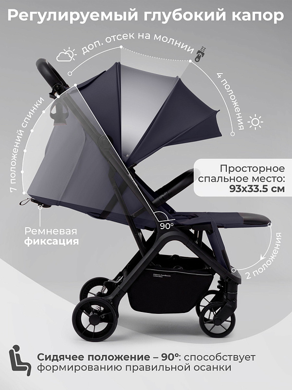 Просторное спальное место (93х33,5 см) и большой глубокий капюшон с дополнительным отсеком подарят сладкие сны вашему малышу.