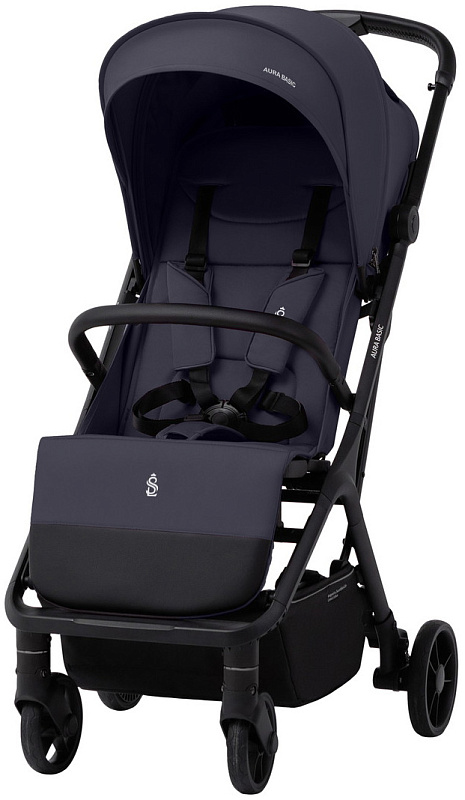 Коляска SBL Aura Basic привлекает внимание своим дизайном: затемненная хромированная фурнитура, черная матовая алюминиевая рама и амортизационные пружины придают ей строгий и стильный вид. Пятиточечные ремни безопасности обеспечивают надежность и спокойствие во время прогулок.