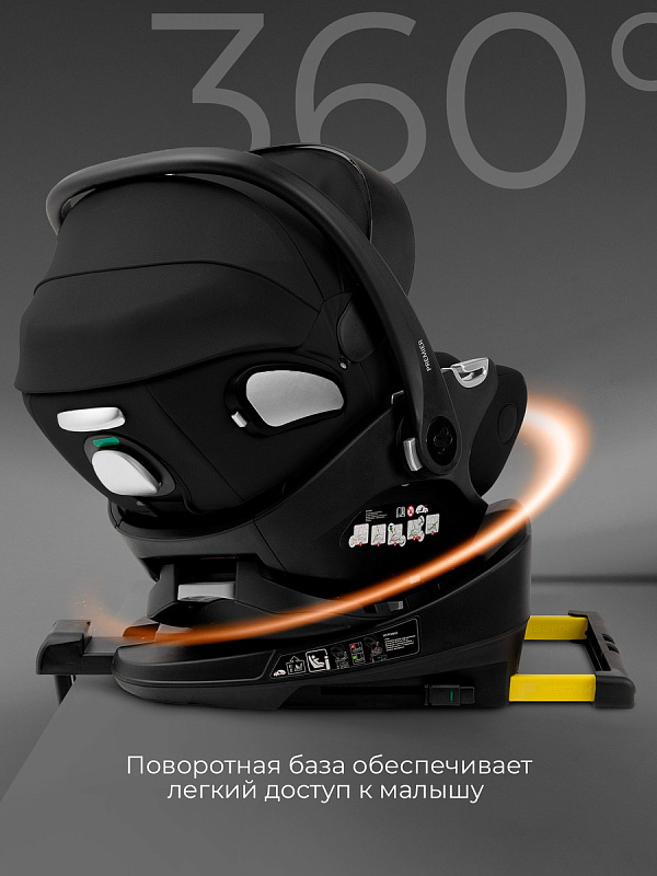 - База i-Size, которая идет в комплекте, превращает автолюльку в полноценное поворотное автокресло на 360 градусов, тем самым упрощая процесс посадки и пристегивания ребенка.