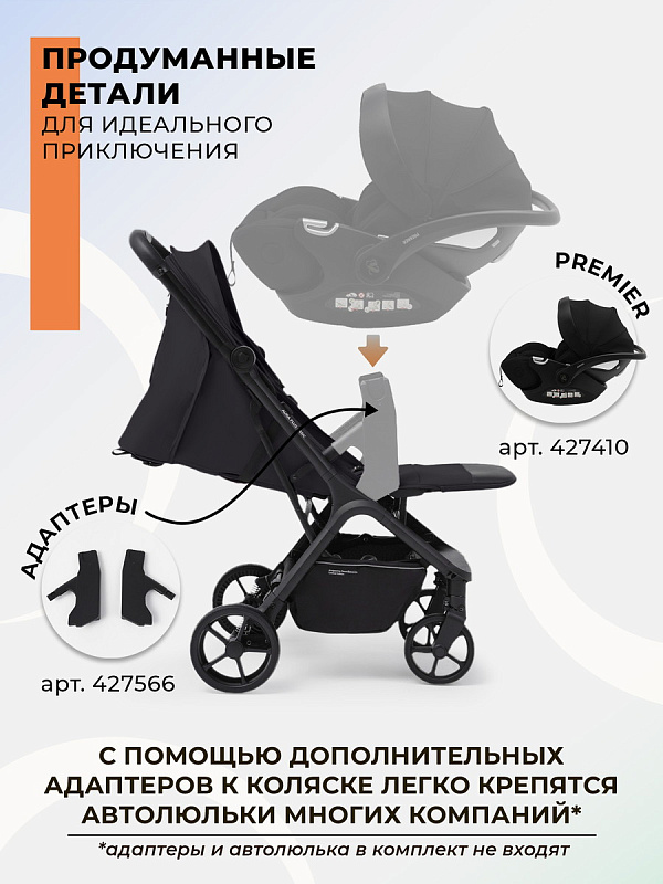 Важная особенность Aura Plus Basic- возможность установки адаптеров для автокресла (продаются отдельно). Это делает коляску еще более универсальной – теперь родители могут легко перемещать малыша из автомобиля в коляску, не тревожа его лишними пересадками.