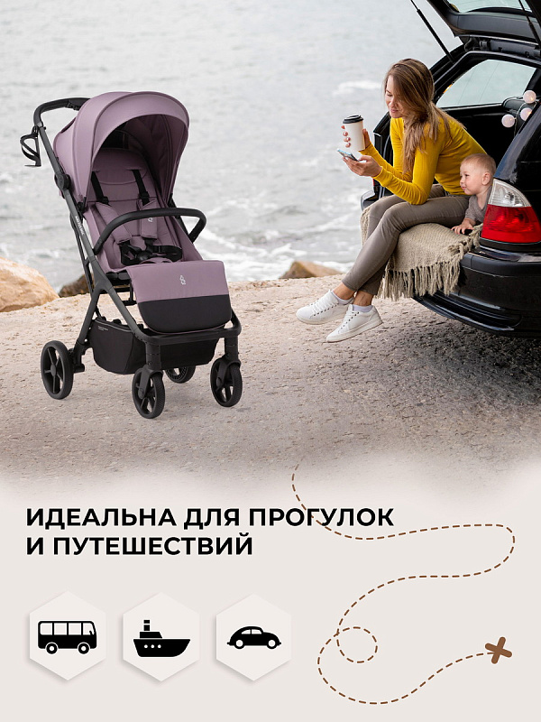 Вес коляски 8,1 кг., увеличенные колеса из цельной резины с протекторами обеспечивают плавное движение по разным поверхностям – будь то тротуары, парки или проселочные дороги.