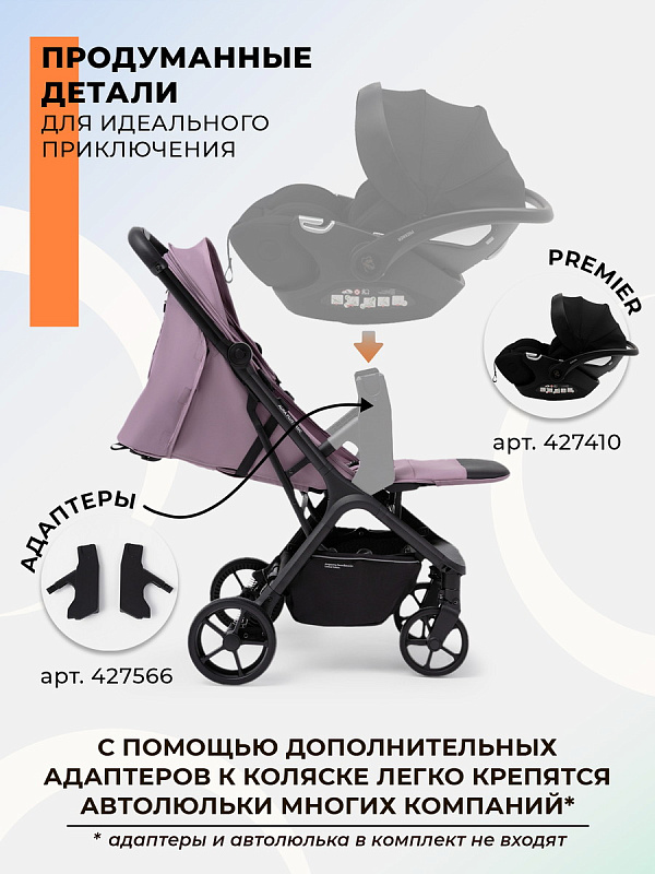 Важная особенность Aura Plus Basic- возможность установки адаптеров для автокресла (продаются отдельно). Это делает коляску еще более универсальной – теперь родители могут легко перемещать малыша из автомобиля в коляску, не тревожа его лишними пересадками.