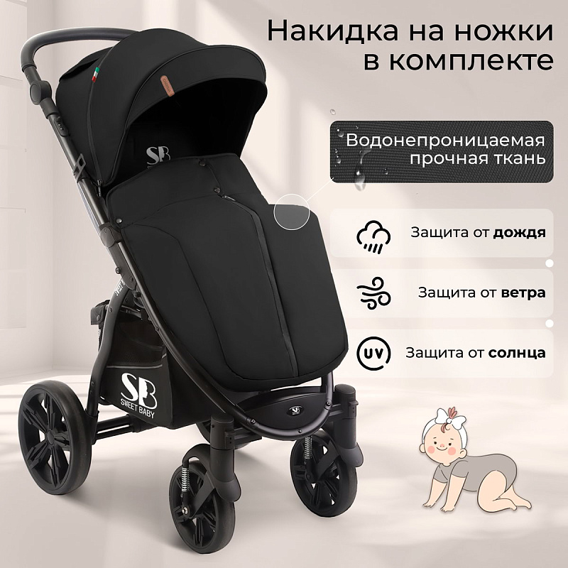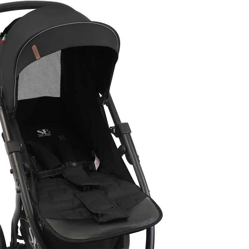 Sweet baby Carisma – новая всесезонная прогулочная коляска итальянского бренда, созданная для безусловного комфорта в путешествиях и прогулках любого формата детей в возрасте от 6 месяцев и до 3х лет . Отличительной особенностью коляски является горизонтальное положение для беззаботного сна и комфортная механическая регулировка спинки (3 положения). Верхняя часть коляски выполнена из инновационного материала с повышенной износостойкостью и устойчивого к выцветанию. Компактная система складывания коляски вместе с сиденьем, при которой рама занимает устойчивую вертикальную позицию, надежно фиксируется держателем, сохраняется гигиеничность ручки и текстильной обивки. Большие задние колеса легко преодолевают неровности грунта и препятствия загородных дорог, передние позволяют маневрировать в сложных городских условиях и являются полноповоротными, что значительно облегчает управление коляской. Функция блокировки передних колес удобна при передвижении по снегу и грязи. В комплекте есть дождевик и подстаканник