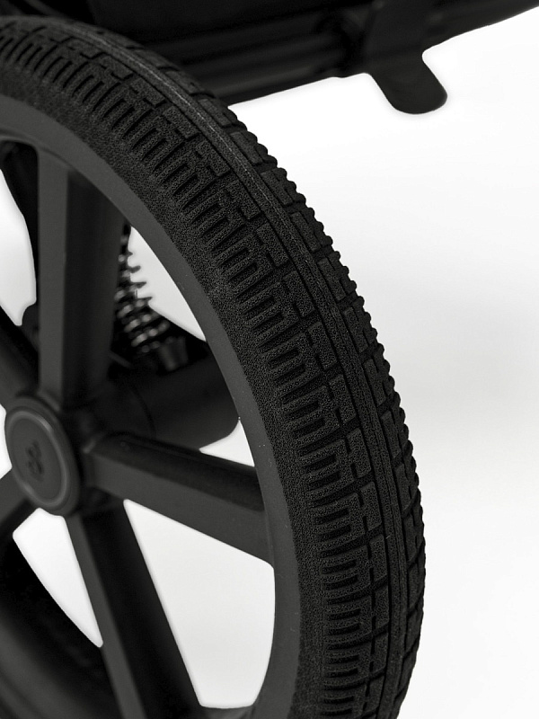 Особое внимание уделено инновационным колесам, которые с легкостью преодолевают любые препятствия и гарантируют плавный ход и маневренность. Материал колес из высокомолекулярного полимера уменьшает вес всей коляски, ведь колеса невесомы и сравнимы с легкими беговыми кроссовками последнего поколения. Диаметр колес увеличен, для возможности использования коляски во всех 4-х сезонах. Но помимо колес, мы предусмотрели пружинную амортизацию передних и задних колес. Передние колеса поворотные с фиксацией.