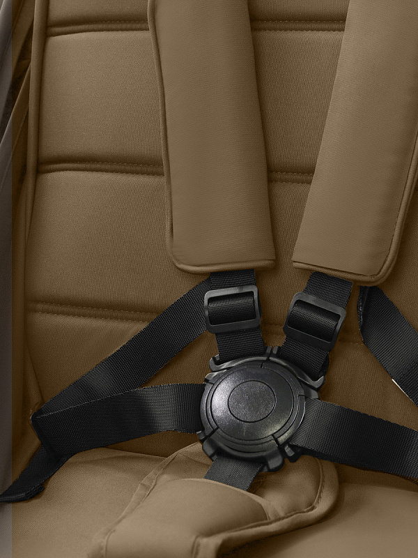 Безопасность вашего малыша обеспечивают магнитные ремни (что очень удобно, так как малыш фиксируется одним нажатием), мягкие накладки, которые добавляют комфорт во время движения, а межпаховая перемычка усиливает безопасность. Отстегивающийся бампер позволяет легко усаживать малыша.