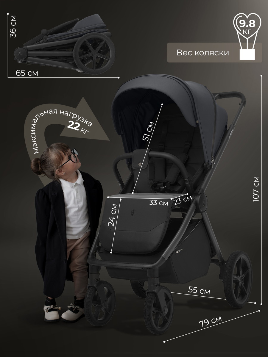 - Коляска складывается одним движением тканью вовнутрь;