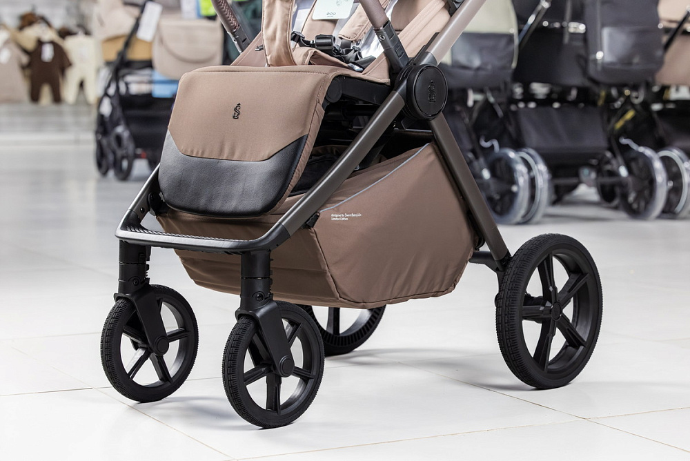 - Детская коляска SBL Elegante D обладает маневренностью, плавностью хода и отличной проходимостью. Все благодаря большим задним колёсам (26 см), передним поворотным колесам с фиксацией (19 см) из инновационного материала- высокомолекулярного полимера, а также пружинной амортизации на все 4 колесах;