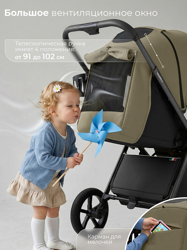 - Смотровое окошко на капоре для наблюдения за ребенком и вентиляционное окошко для обеспечения оптимальной циркуляции воздуха;