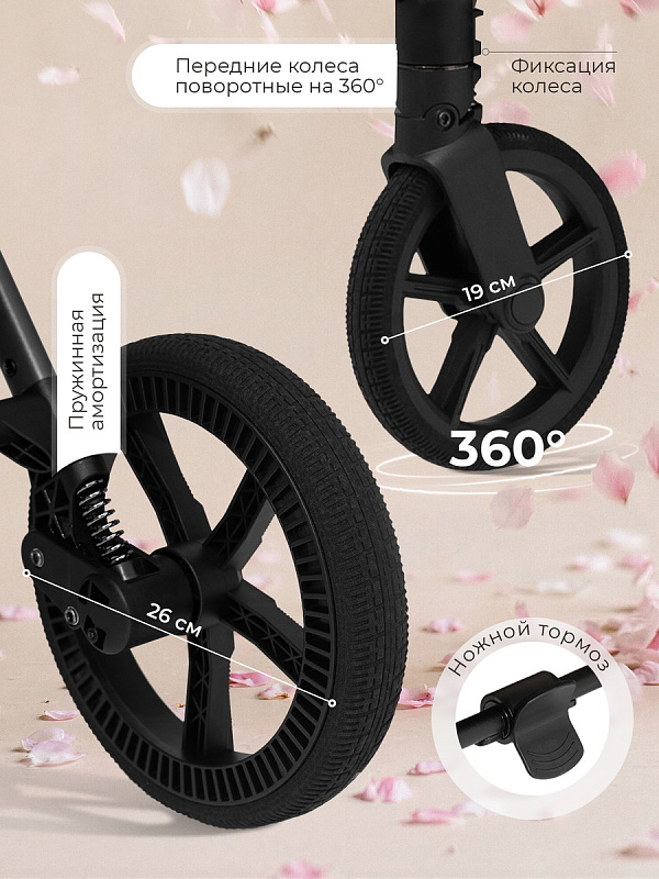 - Детская коляска SBL Elegante D обладает маневренностью, плавностью хода и отличной проходимостью. Все благодаря большим задним колёсам (26 см), передним поворотным колесам с фиксацией (19 см) из инновационного материала- высокомолекулярного полимера, а также пружинной амортизации на все 4 колесах;