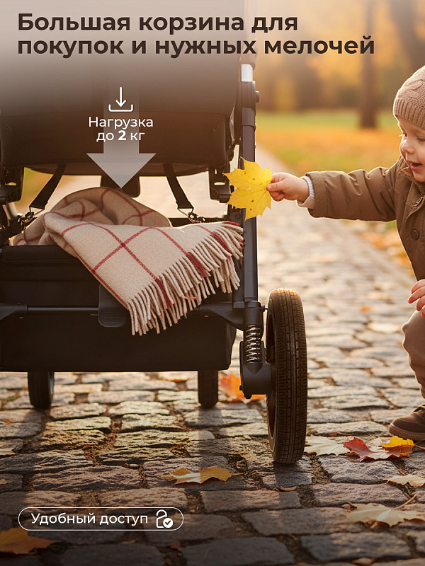 Новые интонационные колеса из высокомолекулярного сшитого полимера с регулируемой подвеской обеспечивают мягкую и комфортную прогулку как в городе, так и на природе. Передние колеса поворотные с функцией фиксации обеспечат отличную маневренность.