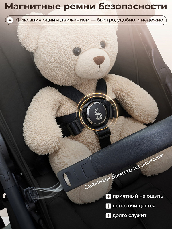 Широкое и комфортное сиденье обеспечит вашему ребенку удобство даже в комбинезоне. Магнитные ремни безопасности добавляют удобства родителям. Большое спальное место позволит малышу чувствовать себя уютно в поездке.