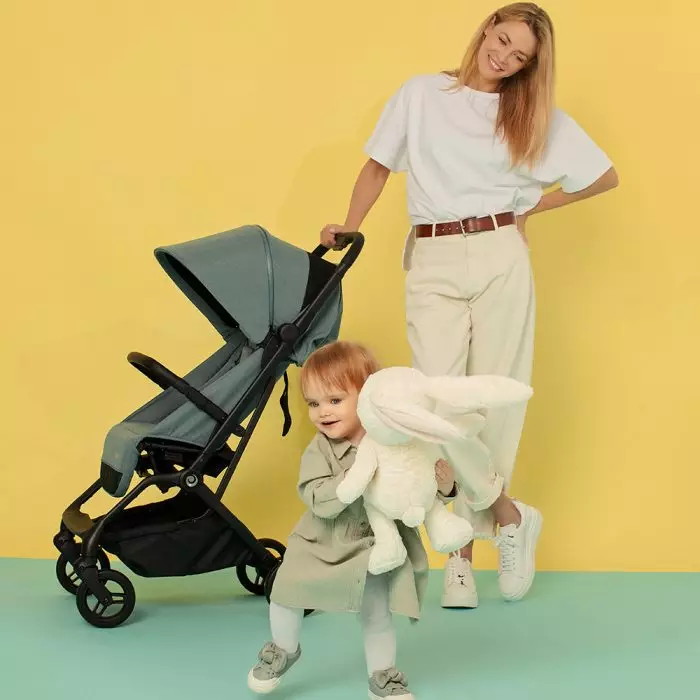 Коляска имеет заднюю систему амортизации. Это облегчает прогулку родителям и делает ее более удобной для маленького пассажира при передвижении по неровной поверхности. Прочная ручка из эко-кожи приятна на ощупь. Удобная конструкция помогает легко складывать коляску одним нажатием кнопки. Передние колеса могут быть заблокированы или разблокированы за один раз. Разблокированные колеса легко вращаются вокруг своей оси под углом 360 градусов. Они обеспечивают шасси дополнительную маневренность, значительно облегчая родителям поездку между полками магазинов.