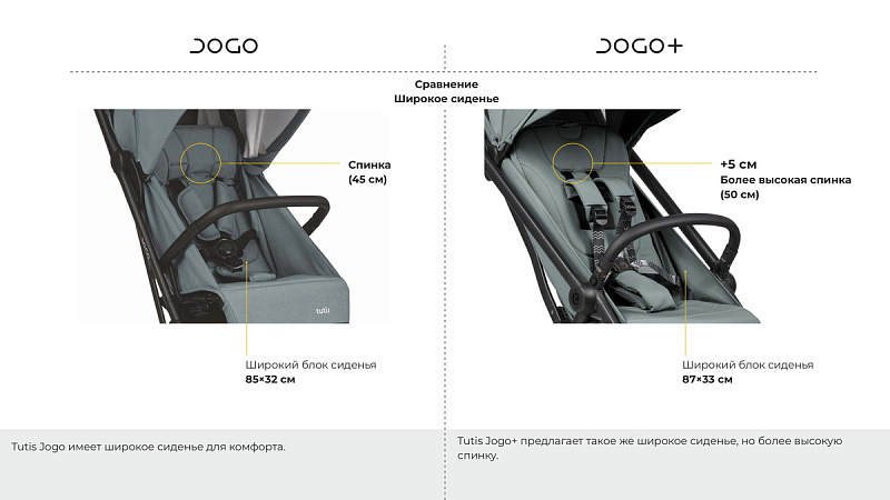 Отличительной особенностью коляски Tutis Jogo является просторное спальное место – 85 см в длину и 32 см в ширину. Именно поэтому мы уверены, что каждый ребенок в возрасте до трех лет будет чувствовать себя комфортно в коляске с мягкой обивкой и качественно отдохнет.