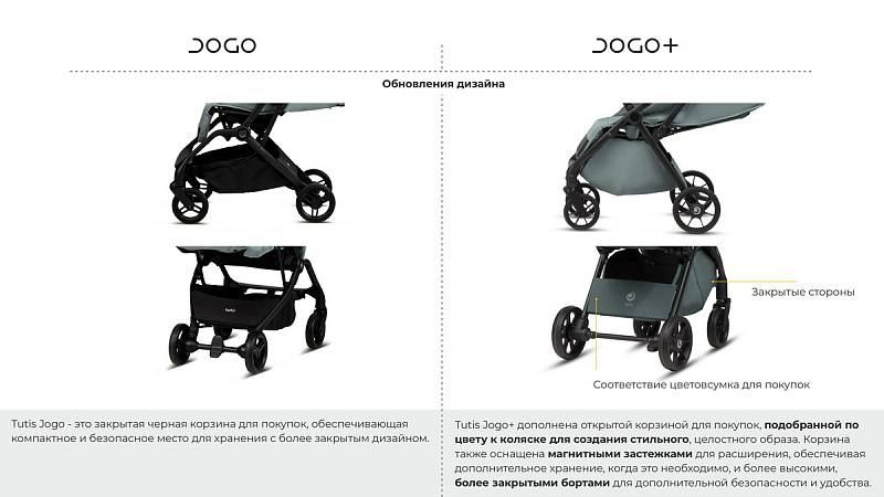 Встречайте самую легкую коляску Tutis — удобная, маневренная и надежная. Городские прогулки никогда не были такими плавными. При создании новой коляски Tutis Jogo мы вдохновлялись современным, активным образом жизни родителей, которые выбирают комфорт во время прогулок и путешествий.