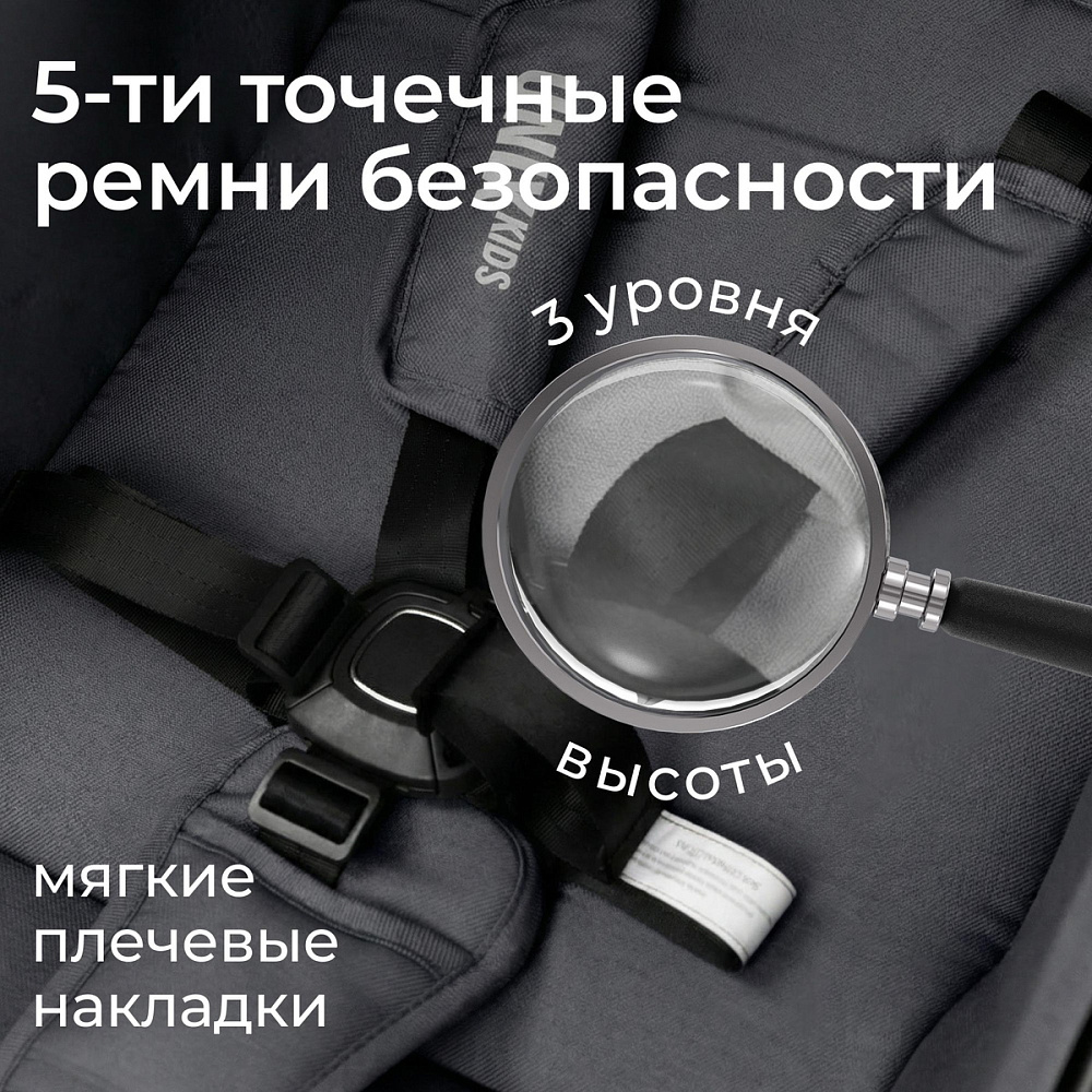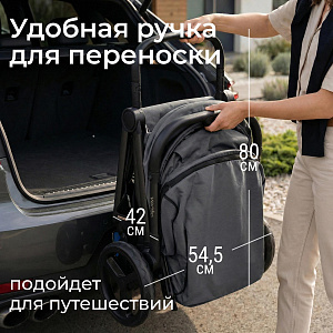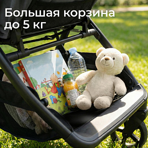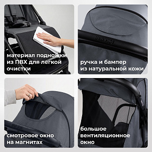 Для вентиляции предусмотрено большое окно на молнии и смотровое окошко на магнитах, позволяющее наблюдать за малышом, не нарушая его покой. Москитная сетка вшита в капюшон. Пятиточечный ремень безопасности с мягкими плечевыми накладками надежно фиксирует ребёнка. Быстросъемный бампер обеспечивает дополнительную защиту и удобство посадки — ребёнок чувствует себя в безопасности и комфорте. Подножка: регулируется в двух положениях для поддержки ножек малыша. Вместительная корзина из прочной ткани с вентилируемыми вставками из сетки рассчитана на нагрузку до 5 кг. Коляска для путешествий, прогулок, самолета оснащена интуитивно понятной системой управления с одной кнопки, что делает её использование максимально простым.