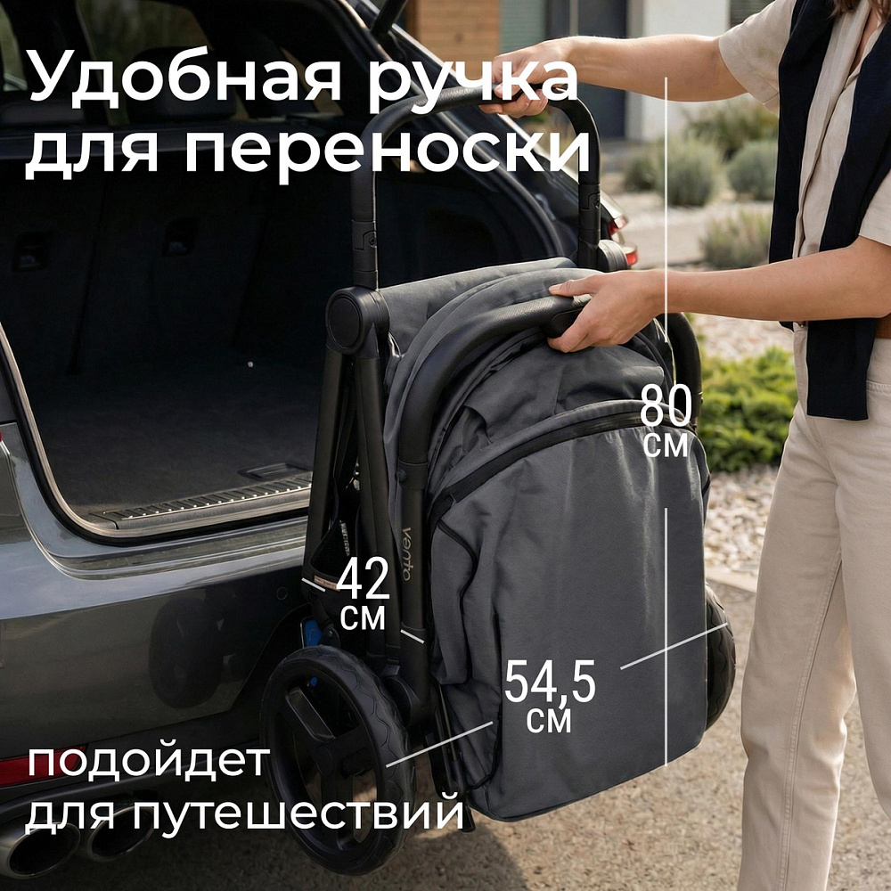Коляска прогулочная всесезонная для лета и зимы UNIX Kids Венто Vento складывается одной рукой по типу «книжка». В сложенном виде модель очень компактна, имеется защитный фиксатор от случайного раскрытия. Вес модели всего 10 кг, что позволяет легко поднимать её по лестнице, легко убирать в багажник автомобиля, брать с собой в путешествия в самолет.