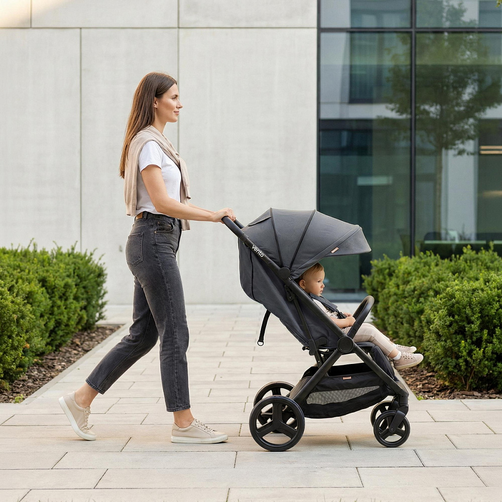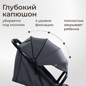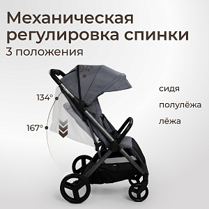 Спинка и положения: прогулочный блок имеет три комфортных положения: сидя (94°), полулёжа (134°) и лёжа (167°). Регулировка осуществляется простым рычагом, что позволяет быстро адаптировать спинку под нужды ребёнка. Капюшон из ткани с защитой от ультрафиолета SPF50+ раскрывается широко и надежно защищает от солнца, ветра и дождя. Смотровое вентиляционное окно на магнитной застёжке позволяет всегда держать малыша в поле зрения и обеспечивать постоянный приток свежего воздуха, создавая комфортный микроклимат внутри коляски.