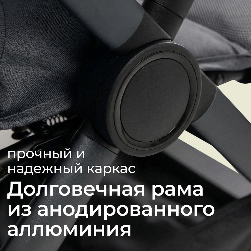 Каркас детской коляски выполнен из анодированного алюминия — легкого, но чрезвычайно прочного материала. Анодированное покрытие не отслаивается, устойчиво к царапинам, атмосферным воздействиям и коррозии. Поверхность рамы гигиенична, не выделяет вредных веществ и сохраняет эстетичный вид даже при активной эксплуатации. Рама окрашена в цвет ткани с эффектом металлик, что придаёт современный и стильный внешний вид. Это рама, которая переживёт все детские зимы и летние авантюры, сохранит вид и не покроется ржавчиной после первого дождя. Роскошная ручка из натуральной премиальной кожи с гравировкой логотипа — это показатель высокого качества и стиля в каждой детали. Ручка регулируется по высоте в 3-х положениях, что позволяет настроить её под рост любого родителя.