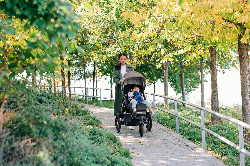 - ремешок на запястье не позволит коляске случайно укатиться даже во время бега