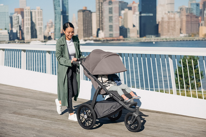 - совместима с подножкой-скейтом для старшего ребенка UPPAbaby RIDGE Piggyback Ride-Along для малышей весом до 25 кг (только для прогулок, не для бега)
